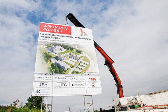 Ein weiterer Meilenstein am Caritas-Krankenhaus Lebach ist erreicht. Im Beisein von einigen interessierten Mitarbeitenden und Patient*innen wurde das Bauschild errichtet. Die Aufschrift “Wir bauen für Sie! Für eine starke medizinische Versorgung unserer Region”, weist ab sofort darauf hin, dass die Weichen für den Bau gestellt sind und die ganzheitliche Versorgung der Menschen in der Region gesichert ist.