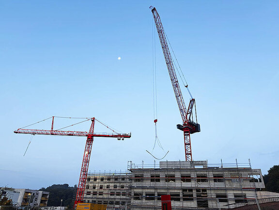 Der Neubau schreitet weiterhin planmäßig voran. Der kleine Baukran wird Anfang Januar demontiert und ein mobiler Kran kommt zu einem späteren Zeitpunkt zum Einsatz. Die letzte Bodenplatte im Erdgeschoss wurde erfolgreich gegossen. Zudem wurde die Baubeheizung installiert, um einen reibungslosen Bauablauf während der Wintermonate sicherzustellen.