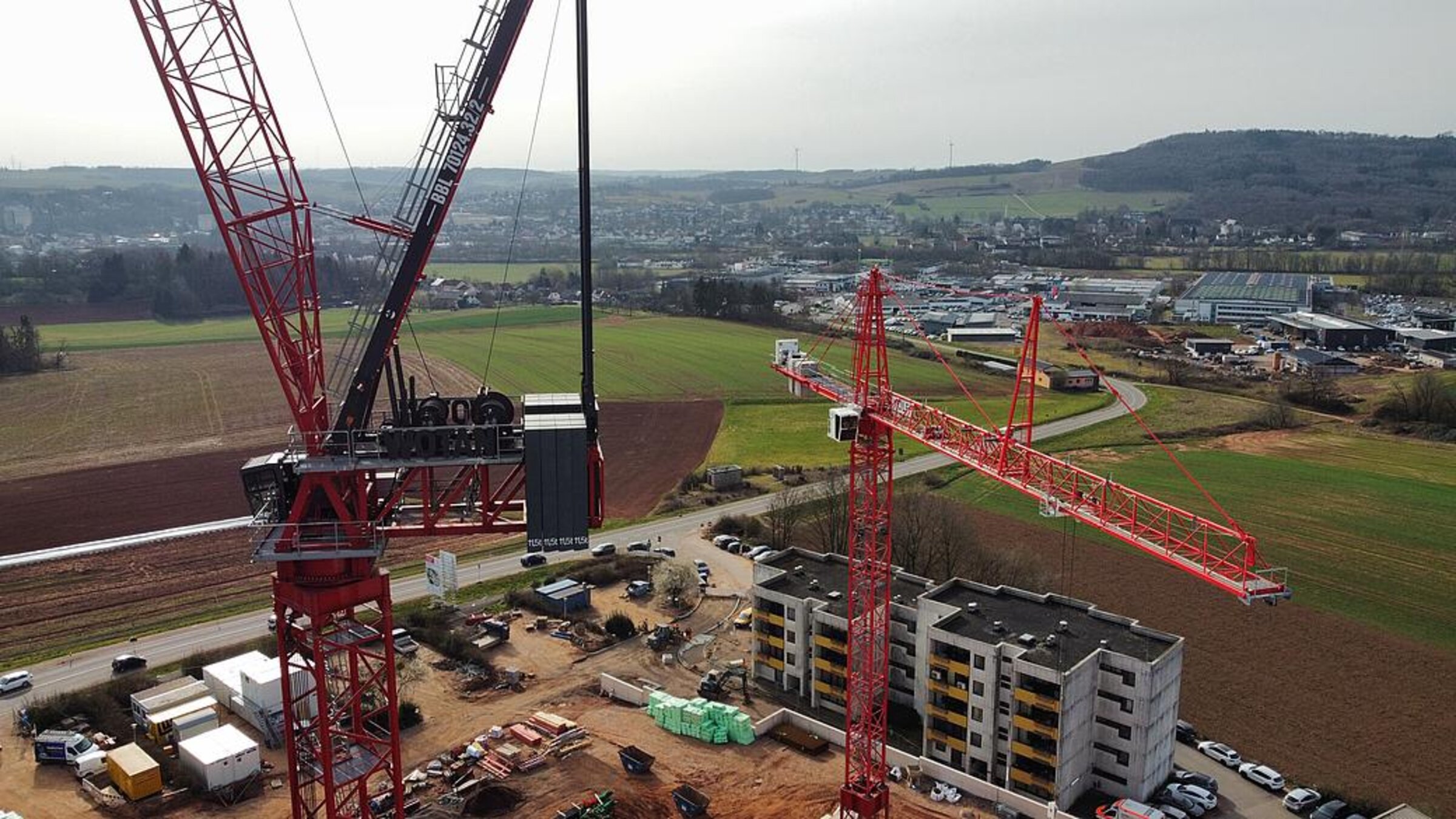 Dieser moderne Wippkran wurde aufgrund der Größe des Baufelds und des Gewichts der Fertigteile ausgewählt. Mit einer maximalen Ausladung von 70 Metern und einer Tragkraft von bis zu 32.000 Kilogramm ist er ideal geeignet, um die hohen Anforderungen dieses Bauprojekts zu erfüllen. Durch die Positionierung des Krans innerhalb des Gebäudes werden Platzrestriktionen auf der Baustelle optimal gelöst, und die Effizienz der Bauarbeiten wird deutlich gesteigert.